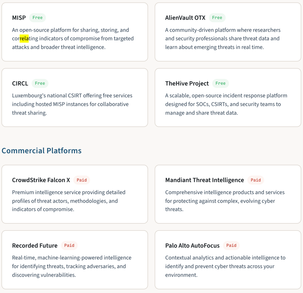 Notable Threat Intelligence Platforms